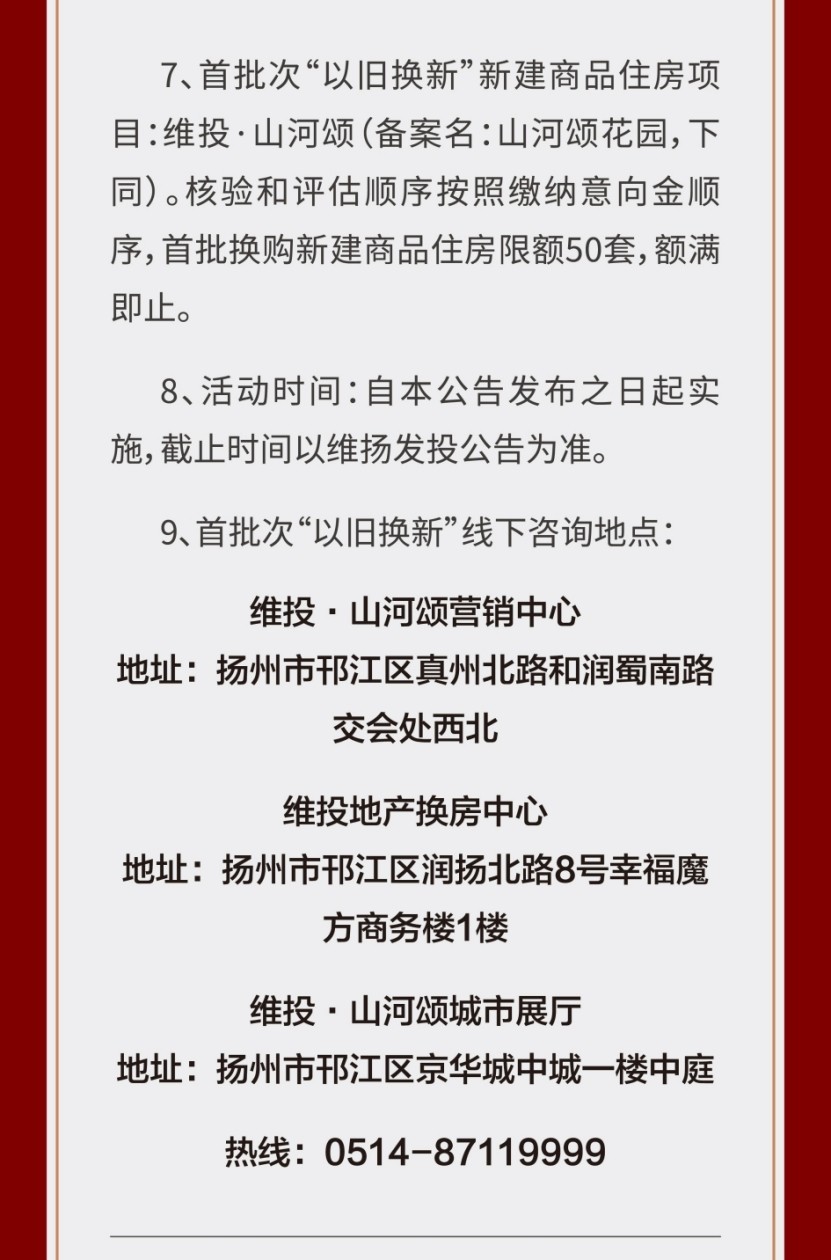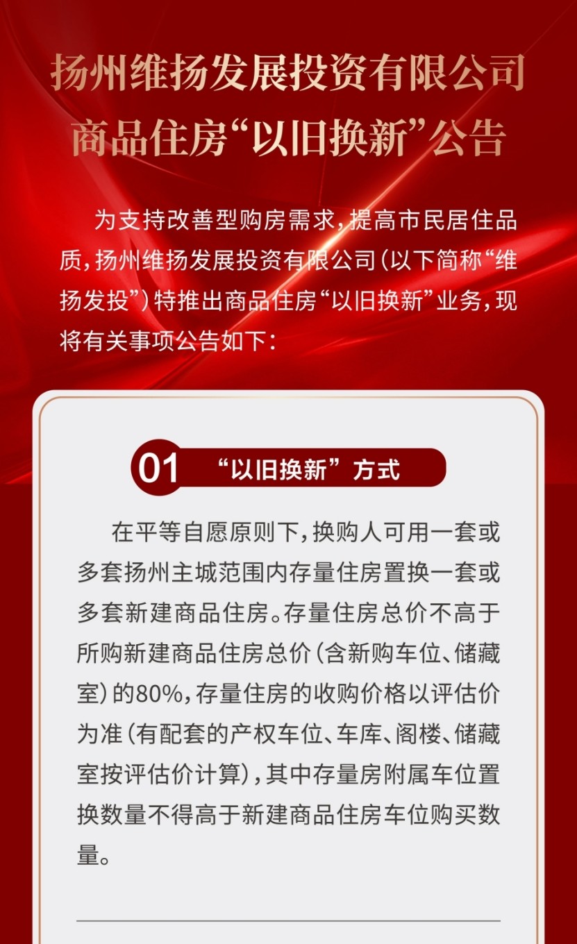 揚州維揚發(fā)展投資有限公司商品住房“以舊換新”公告